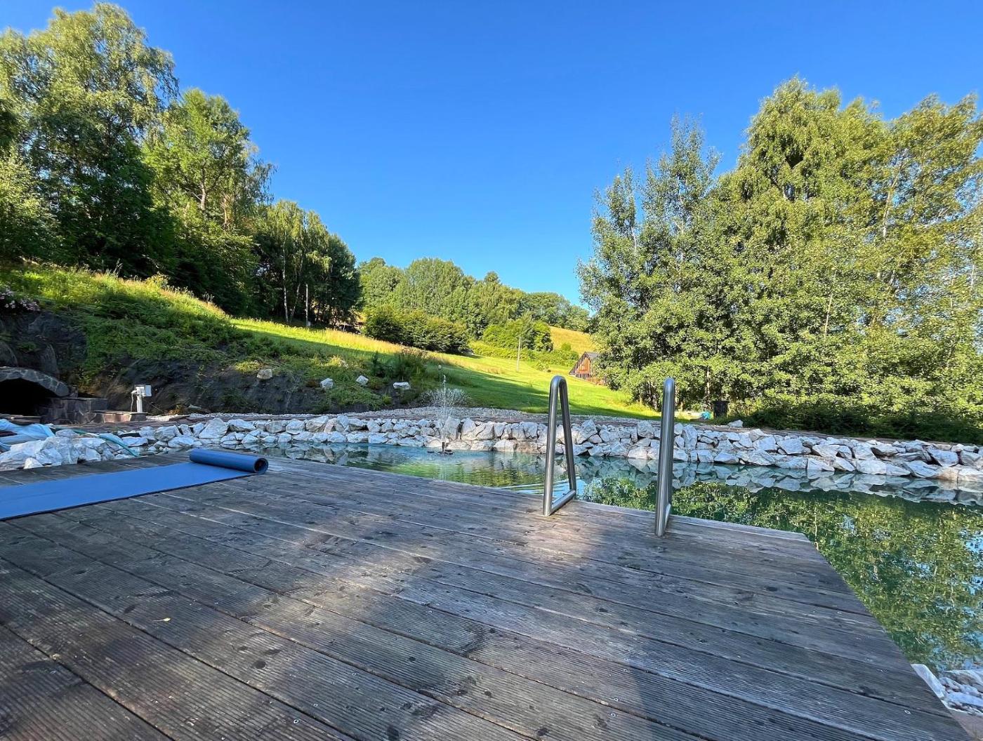 Situated in Dlouhá Ves, Chalupy Rajsko na Šumavě features accommodation with a pool with a view. This property offers access to a balcony, free private parking and free WiFi. The property offers barbecue facilities and outdoor furniture.