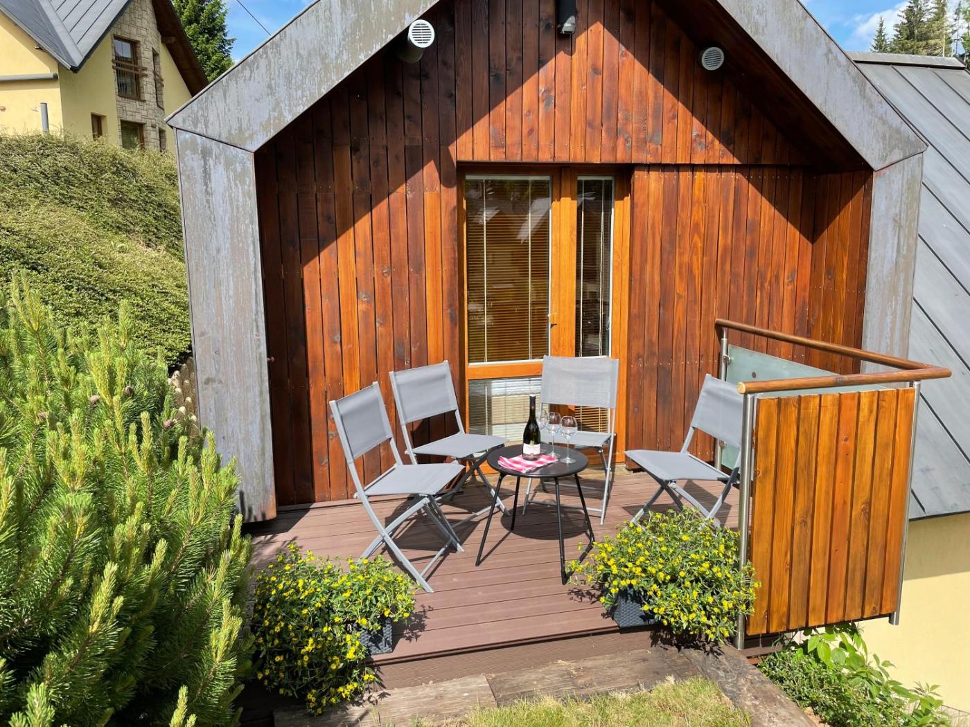 GARAGE Harrachov is a recently renovated apartment in Harrachov,guests can make the most of its garden and barbecue facilities. The property has garden and quiet street views, and is 13 km from Szklarki Waterfall. There is an outdoor fireplace and guests can make use of free WiFi, free private parking and an electric vehicle charging station.