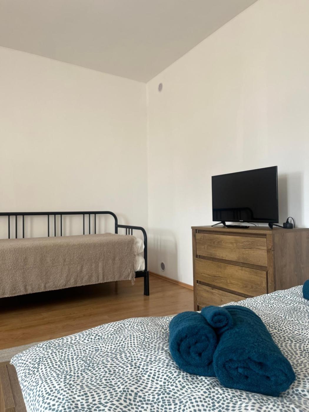 The apartment consists of 1 bedroom, a living room, a fully equipped kitchenette with an oven and a kettle, and 1 bathroom with a shower. Towels and bed linen are provided in the apartment. The accommodation is non-smoking.