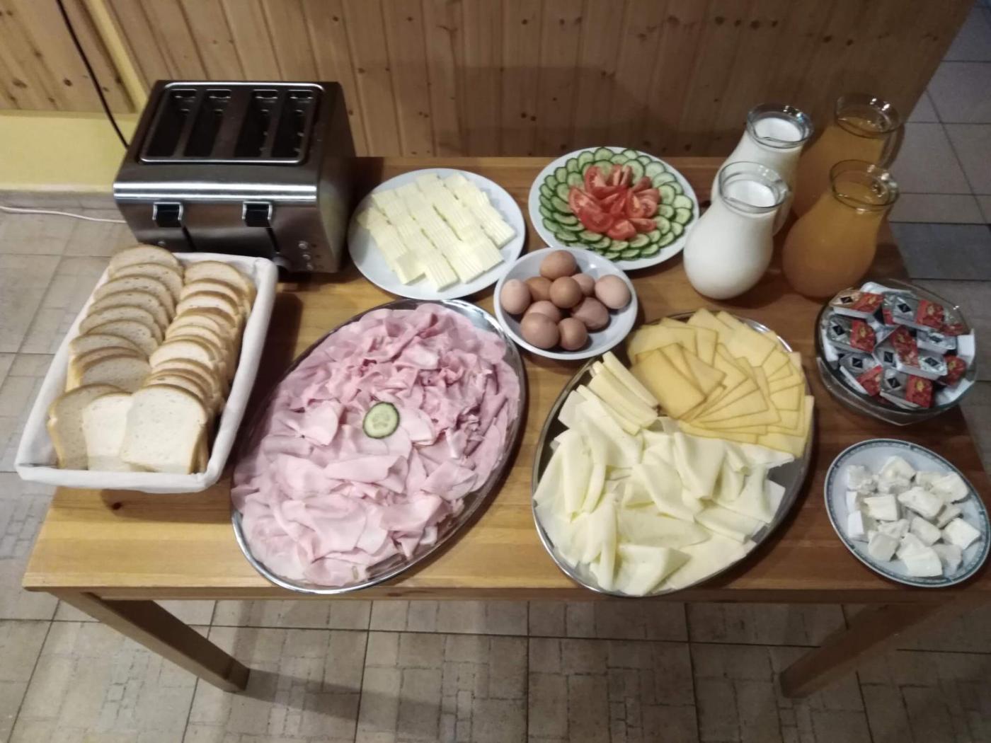 A selection of options including fresh pastries, juice and cheese is available for the buffet breakfast.