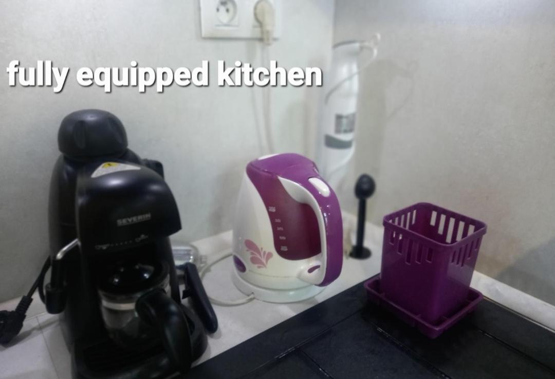Apartment. This apartment with large bad and private bathroom has a kitchen, sofa and kitchenware. The apratment futures washing machine and dryer