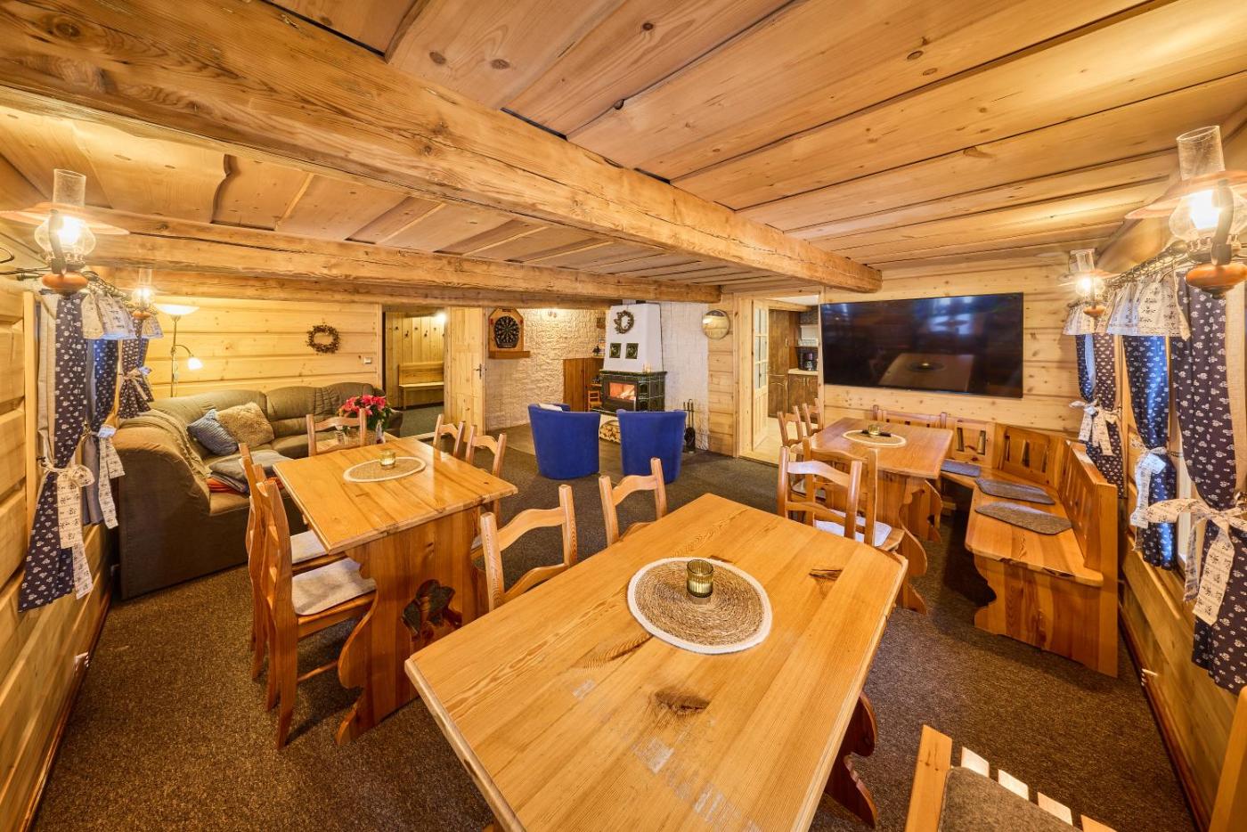 Offering a garden and river view, Chalupa Javořinka isin Pec pod Sněžkou, 34 km from Western City and 35 km from Bus Stop Strážné. This chalet provides free private parking and a shared kitchen. The accommodation offers a hot tub, free WiFi throughout the property and family rooms.