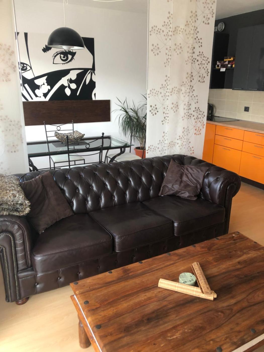 Apartment with Balcony. This luxury apartment with an area of 65 sqm is located in a quiet residential area of Prague 10 and offers accommodation for up to 5 people. There is a bedroom with a king-size bed (200x200 cm), a living room with a sofa bed for 2 people, for the 5th and 6th person there is a 90x200 cm mobile bed. The kitchen comes with a dining table for 4 people. The bathroom is equipped with a washing machine, a hairdryer, curling irons, a sink, a mirror and a bath. The toilet is separate. The apartment is non-smoking, smoking is only allowed on the terrace featuring a wooden furniture. The apartment has a satellite TV and free Wi-Fi. Free public parking is available.
