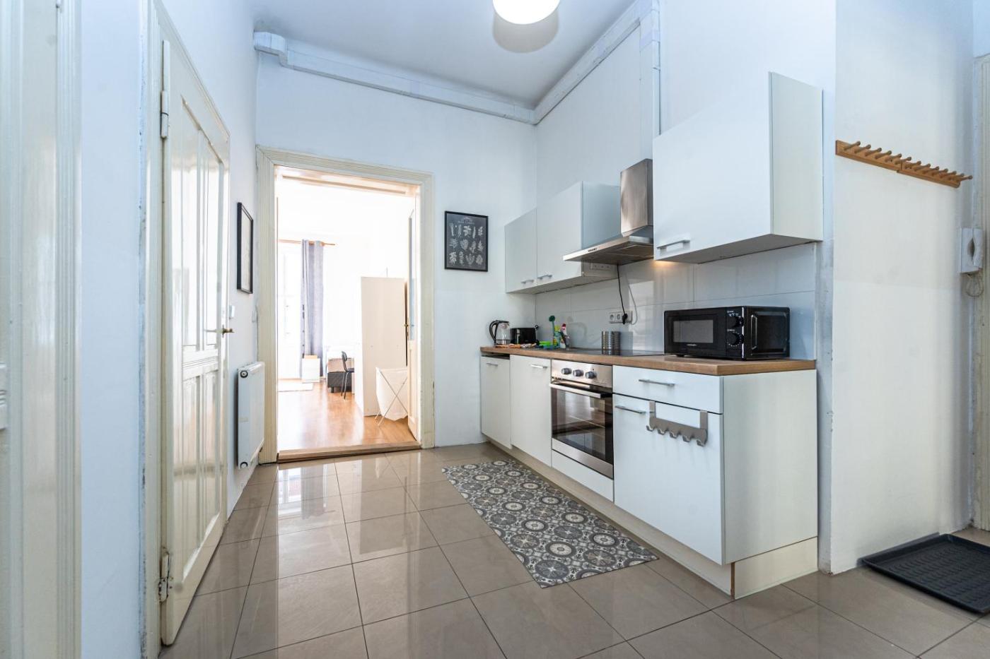 Apartment. Featuring a private entrance, this apartment consists of 1 living room, 7 separate bedrooms and 1 bathroom with a bath and a hairdryer. The well-fitted kitchen features a stovetop, a refrigerator, a dishwasher and kitchenware. Among the room amenities are a washing machine, soundproof walls and a tea and coffee maker as well as a quiet street view. The unit offers 8 beds. ;
