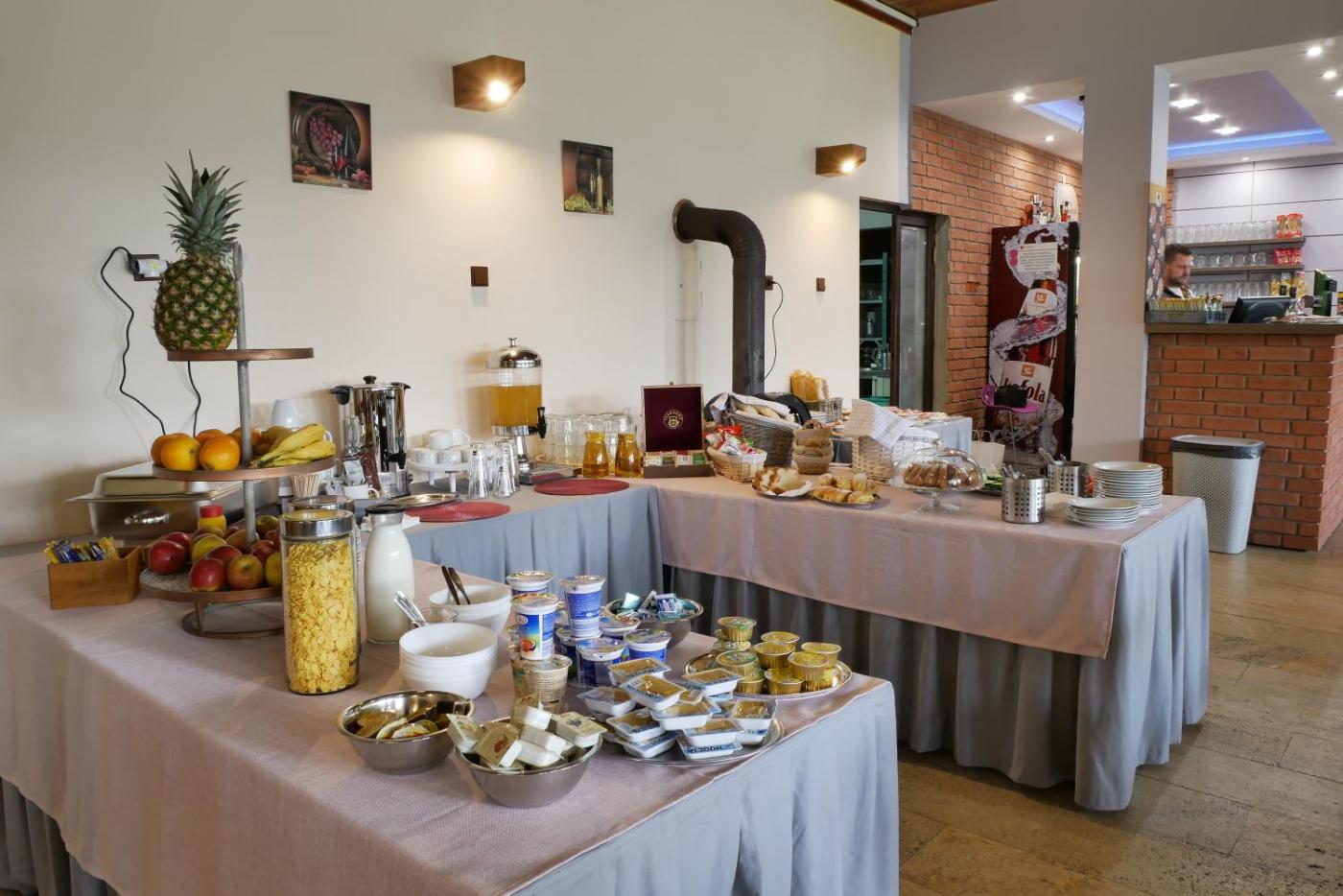 Buffet and continental breakfast options with fresh pastries, fruits and cheese are available.
