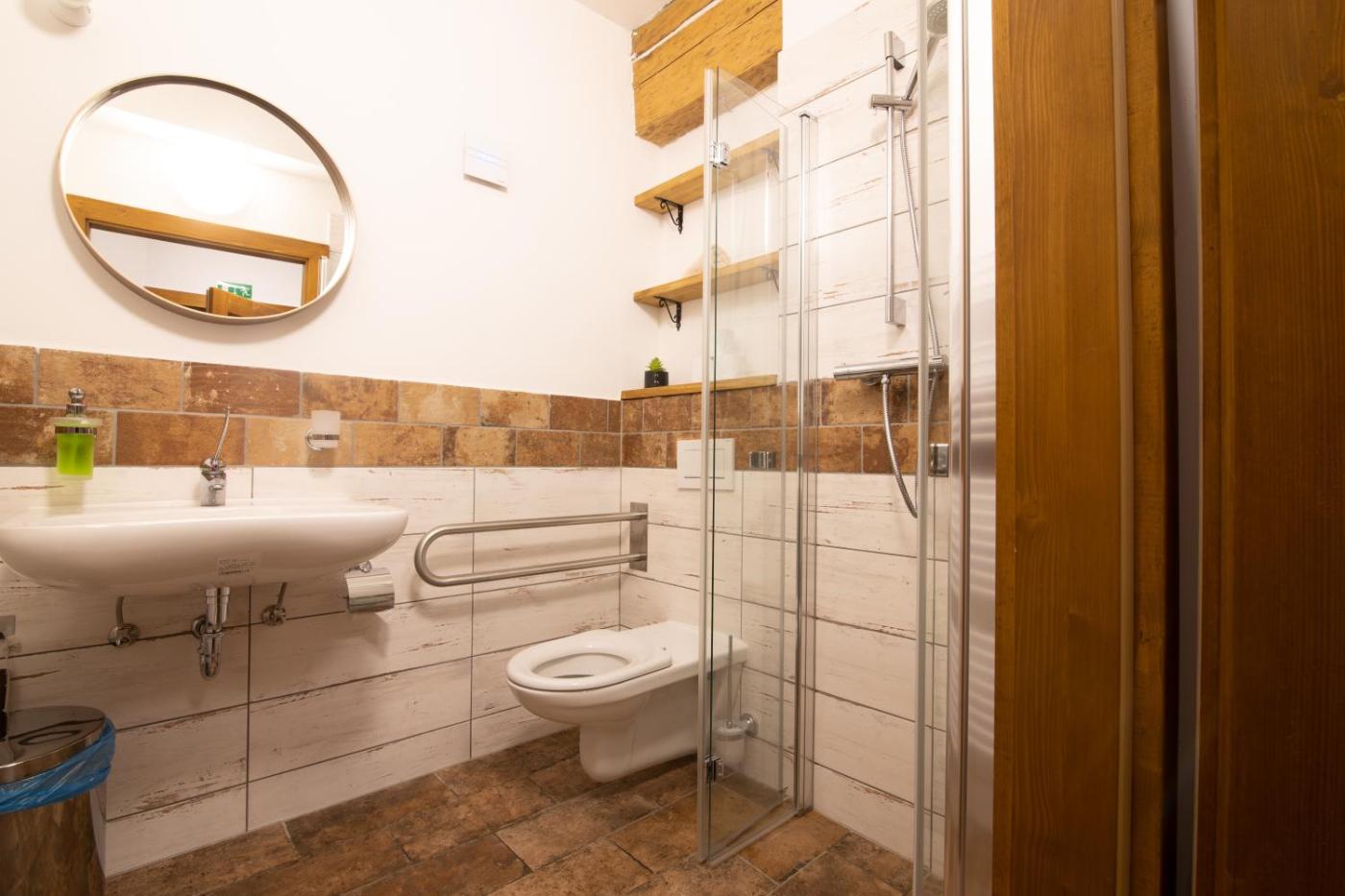 Triple Room with Private Bathroom. Providing free toiletries, this triple room includes a private bathroom with a shower. The triple room provides a wardrobe, parquet floors, heating, a flat-screen TV with satellite channels, as well as garden views. The unit offers 2 beds. ;