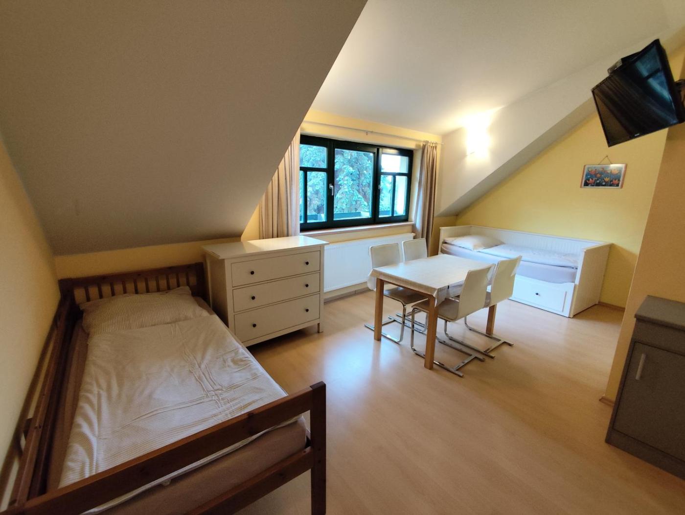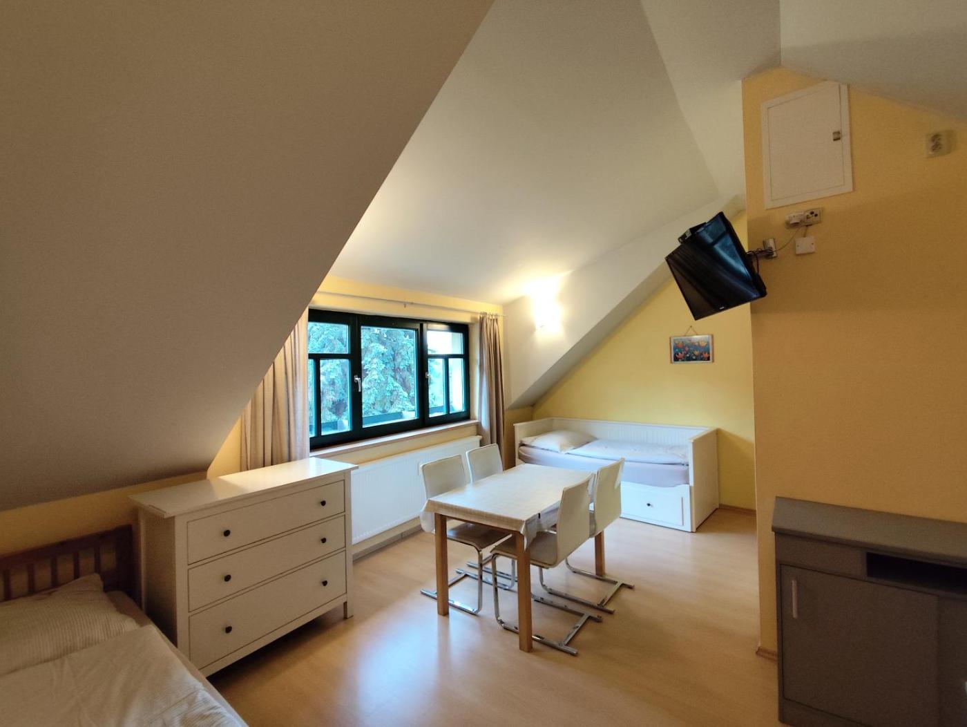 Family Room. Offering free toiletries, this family room includes a private bathroom with a shower. The family room offers a flat-screen TV, a tea and coffee maker, a wardrobe, heating as well as city views. The unit has 4 beds.